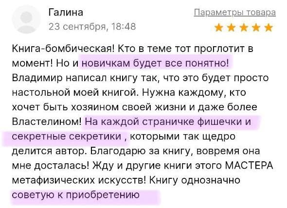 Познакомьтесь с неким мистическим компонентом внутри вас и Вселенной, который поможет пробивать железобетон реальности и получать то, что вам хочется видеть в своей жизни. Научитесь технике, как это делать. стр. 77